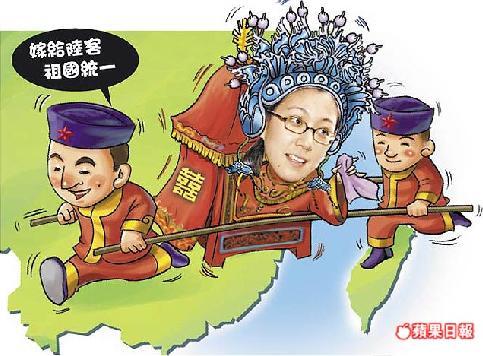 有大陆网友曾在马英九妻子周美青的博客搞怪留言,向马英九的大女儿马唯中求婚:“周夫人把马唯中小姐嫁到大陆来,开创两岸结合新局面!”该网友主张“大陆的猛男们为了祖国的统一,勇敢的向台湾妹妹发动进攻。”