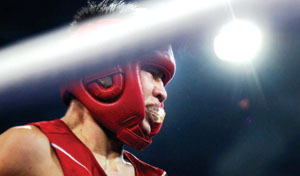 按照国际拳击比赛惯例,拳手的所有护具——拳套、拳击头套,都由赛事组委会统一派发。而拳击背心和拳击鞋也大多雷同,看上去没有个性。