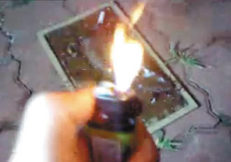 台湾某科大生以酒精膏淋在野鼠身上,再点火燃烧成焦尸,整个过程用手机拍成影片上传到博客。图片来源:联合报