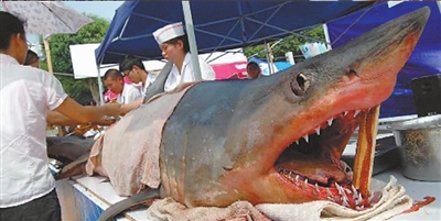 广西惊现“鲨鱼宴” 汉网-长江日报 2009.10.2303:14 关注 10月18日,在广西南宁举行的东南亚国际旅游美食节分会场上,商家推出“鲨鱼宴”,现场宰杀并烧烤鲨鱼以飨食客。为印证鲨鱼肉的真实度,商家将~头长约2米、重100多公斤的虎鲨搬到了现场展示。 余晓春辑