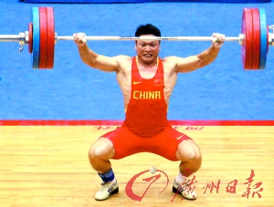 在抓举项目的比赛中,吕小军在最后一把试举中成功举起了170公斤,与李宏利并列抓举项目第一名。