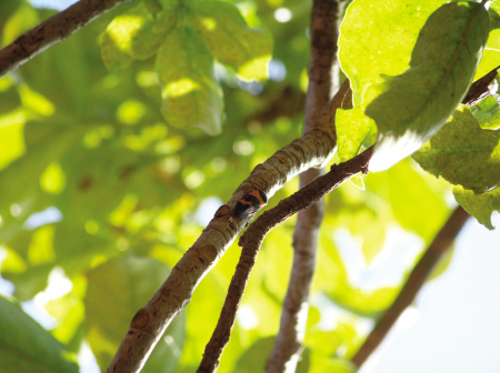 老陈说,“怪树”原本有两根主枝干,但半个月前寺内管理人员嫌枝干过于拥挤,将其中一根锯了。“神奇的是那枝干锯掉不久,村民就发现树开始‘下雨’了。”护寺员赶紧找“专家”解谜,“专家”说那是“圣树”,之后此树会下雨的事就传开了。有人说是树神显灵,也有人说自然界本身就有会下雨的树,但细心的观者发现树上爬着不少飞虫,认为“雨滴”极有可能是飞虫撒的尿。