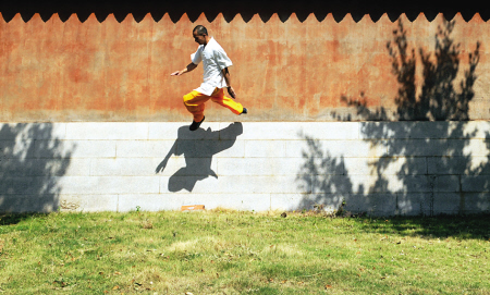 泉州南少林武僧团副团长释理慧介绍说,释理亮刚进南少林时曾练过“吊功”,但经过一段时间后,才发现释理亮更适合练“水上漂”。因为释理亮个头并不高,只有1.63米,体重108斤,轻便的体重可以减少三合板承受的重量。