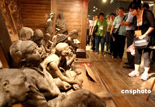 7月7日,参加“2007年两岸侨联和平与发展论坛”的海内外嘉宾在厦门参观华侨博物院。图为华侨博物院展示的雕塑“猪仔”船是运载契约华工的船只,“猪仔”船又被称为海上“浮动地狱”。中新社发张勤 摄版权声明:凡注有“cnsphoto”字样的图片版权均属中国新闻网,未经书面授权,不得转载使用。【更多图片】