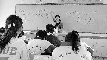 记者来到泰山中学时,教学二班的学生正在上日语课。在五楼的外语教学教室里,年轻女教师王兰芳不时用日语向学生们讲解练习题。课后,王兰芳告诉记者,在高二年级的其他学生进入英语学习班时,这些学生将会进入日语学习班学习日语,她的学生已经学了半年多的日语了,基本的语言能够听得懂。