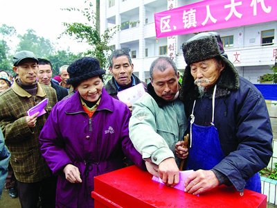 2007年1月,重庆永川区朱沱镇水渡滩村群众在选区参加区、镇两级人大换届选举CFP供图
