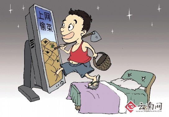就读于昆明市某小学五年级的程程是开心农场的一位“老农”,偷菜半年多来,在不同的偷菜网站注册了自己的账号并结识了很多“农友”。每天放学回家,第一件事就是迅速打开电脑上网进“农场”,先把蔬菜和动物全部收掉,再顺着把所有好友已经成熟的作物偷一遍。