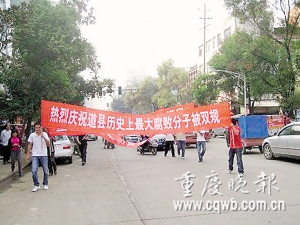 县委书记被双规群众拉横幅庆祝 华龙网-重庆晚报 2009.10.3002:20 关注 “湖南道县县委书记易光明因涉嫌违纪被省纪委双规”,早间曾在各论坛流传的这一消息,昨天下午得到了湖南省纪委证实。对此消息,道县民间反应强烈,部分群众甚至打出横幅上街“庆祝”(见上图)。据大河网