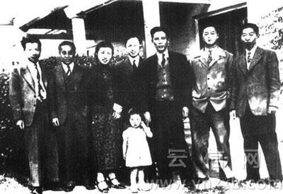 1943年,钱学森和几位中国研究生在帕萨迪那(Pasadena)与周培源夫妇合影。