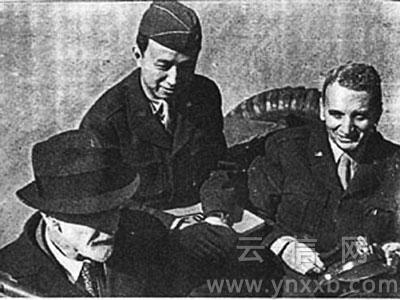 1945年,钱学森(中)随冯·卡门(右)在德国哥廷根会见空气动力学家L·普朗特。