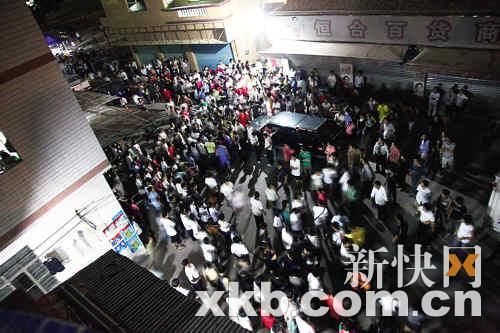 昨日零时许,在事发现场,上千名外来工聚集。