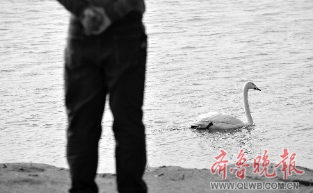 ▲管理员崔吉江与被救天鹅形影不离。