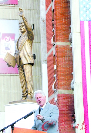克林顿雕像科索沃揭幕 广州日报 《广州日报》官方账号 2009.11.0304:23 关注 美国前总统克林顿1日访问科索沃首府普里什蒂纳,为他的一座三米高雕像主持揭幕(如图)。 克林顿在1999年支持北约出兵前南斯拉夫,最终促成科索沃宣布独立。(宗禾)
