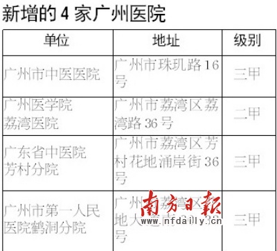 4家新增广州定点医院名单昨公布