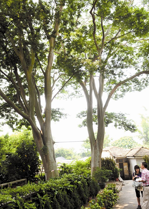 为了帮古树正名,刘海桑等专家经过一年的跟踪,采到了大树的花、果等制成完整的标本,然后对比查阅大量的外文资料。最后,经和存放在世界最知名的植物园——— 邱园中的加勒比合欢的模式标本相比较,才确认这两株大树系加勒比合欢(Albizianiopoides)。后来,邱园的豆科专家在给刘海桑的邮件中,也认同了刘海桑博士的鉴定。