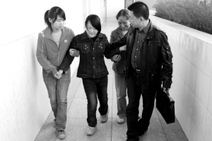 唐巍丹的妈妈说,当时女儿从8楼摔下来,幸亏在坠楼途中被电线挡了一下,才保住性命,不过却落下残疾,只能靠双拐走路。由于家里没经济来源,母女俩就靠560元的低保金度日,要不是减免学费,孩子早辍学了。这个来之不易的上学机会,让唐巍丹在以后的学习中十分刻苦,“她常常晚上看书到两三点”。丹丹寝室的姐妹说,唐巍丹的学习成绩总是前几名,她们有什么不懂都向丹丹请教。“她很好,即使一道题讲十遍也不会烦。”
