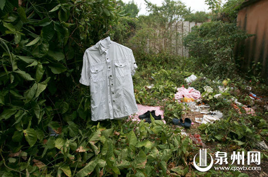 故宅外,垃圾旁,晾衣服