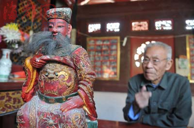 得知记者与专家到来,桃源村老先生傅孙秀“请”出一尊高约50厘米的“红帝公”坐式神像。神像头戴王帽,身着红袍,脚着王靴,红脸。“寺庙里的神像很多在‘文革’期间遭到了破坏,这尊‘红帝公’因为体量小,没引起注意,被留存到现在。”老先生告诉记者,庙里的这尊“红帝公”,小时候就听爷爷辈讲起过,只是大家都不知道神像的来历。