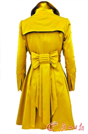 “流行的总是会过时,只有经典的才能经得住时间的考验。”在兴华商场的佳莉丝专柜,记者见到了数款宫廷式收腰蝴蝶结短风衣。蝴蝶结一直是极受女性欢迎的传统和设计元素,与或黄或绿色彩柔的风衣搭配,修身设计,将蝴蝶结或置于后腰,或置于侧腰,配上简单的V字领娃娃衫,或是古典外翻领,以及精致的袖口设计,衬上水墨画印花裙摆,令女性的优雅甜美气质显露无遗。