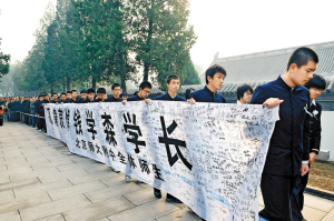 钱学森班学生魏笠明年即将毕业。他一大早就来到八宝山,向自己最崇敬的科学家作最后的告别:“我们作为学生,也要像钱老一样严谨,有朝一日作出更大的贡献。”