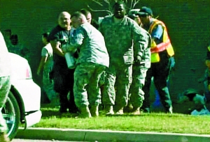 枪手在交火中身中数枪,一名女军人首先开枪将他打伤。军方说,如果不是基地中军人作出迅速反应,伤亡数字将不止13死30伤。