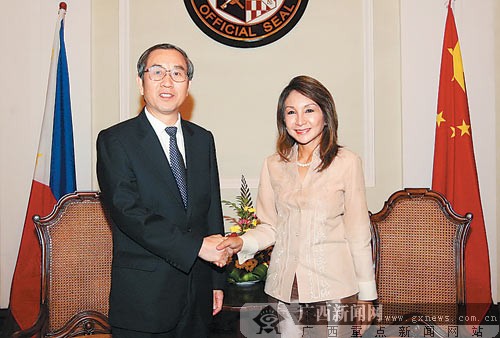 11月7日晚,自治区主席马飚在菲律宾宿务省宿务市会见了宿务省省长奎德琳·加西亚。 记者 何运斌摄
