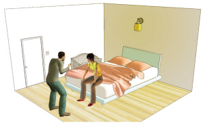 晚上睡觉的时候,他逗儿子玩,老婆却说累了要睡觉。说着老婆就去关灯了。他马上把灯打开。一关一开,来回了三四次。