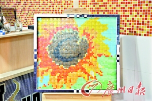 “剪拼”是制作马赛克拼图的最高境界,即把马赛克按照原画中的图形用剪刀剪成不同的形状,拼接粘贴。这需要一定的艺术功底及对色彩和画面的操控能力。