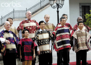 2004年APEC在智利举行,这次领导人在照相时,智利推出的民族服装是传统的套头披肩“查曼多”。据说,这种服装源自智利的“牛仔披风”,每件衣服需要巧妇连续工作四个月时间才能做成。