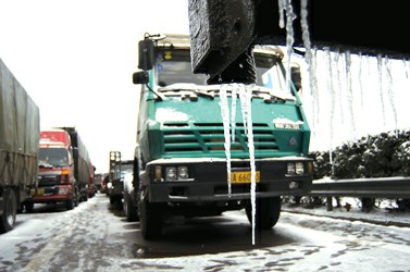 连日暴雪导致上万辆机动车被困在山西的公路上