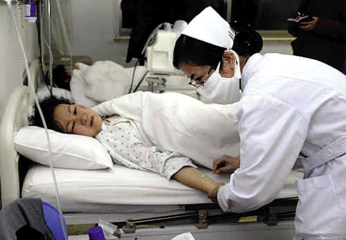 在该院住院部8楼的心胸外科病房,记者找到了在此次事故中生还的两名伤者。记者进入病房后看到,两名伤者均为中年女性,意识清醒,但全身均有绷带,靠窗的伤者左眼通红,而靠门的伤者头部多处受伤包扎。记者进入病房不到一分钟的时间内,一直有护士和主治医师为伤者做检查记录,一名医院保安一直坐在房间内。