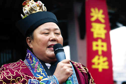 15日的武汉长春观内,人山人海,道乐飘扬。当日上午,长春观王母殿首先举行了隆重的开光庆典。9时30分许,吴诚真大师在两列身着道袍的道人引导下,步入临街的长春观大门前正式接受奏章文疏。随后在王母殿前,吴诚真大师方丈升座庆典隆重举行。