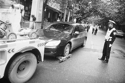 随后,一辆牌照为川A612U2的轿车违法停放在对面车道上,民警在联系不上驾驶员的情况下,也将其拖走。而1小时前,同样在这里,一辆牌照为川Y32685的黑色比亚迪轿车停靠在帘官公所街西侧的占道停车场外,晃眼一看与正规停放的车龙混为一体。但该车却未停在泊位里,而是紧靠路口处停放,对路口交通带来了影响。交警五分局民警在同样无法联系驾驶员的情况下,将该车拖走。