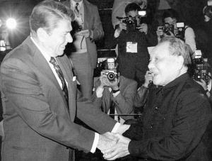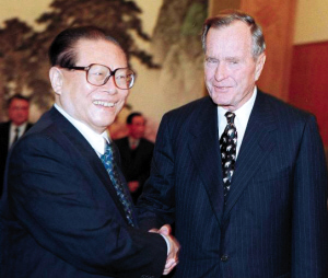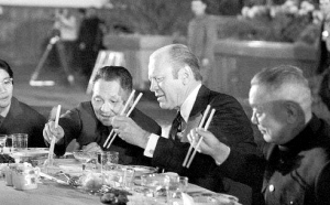 1975年,美国总统杰拉尔德·福特访问中国。邓小平设宴款待福特总统。2000年3月2日,中国国家主席江泽民在北京会见美国前总统乔治·布什及夫人一行。2002年2月21日,美国前总统布什与夫人抵达北京首都国际机场,开始为期两天的工作访问。 2006年12月13日,胡锦涛在北京会见美国前总统乔治·布什。 1972年2月,美国总统理查德·尼克松访华,打开了中美两国关系正常化的大门。图为毛泽东主席在北京会见尼克松。1972年2月,美国总统理查德·尼克松访华时,周恩来总理到北京机场迎接尼克松总统。1984年4月26日~5月1日,美国总统里根访华,邓小平亲切会见里根。