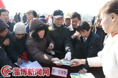 仪式开始前,赶来参观的群众就蜂拥而至争相领取项目介绍资料。