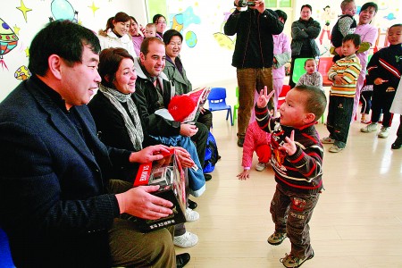 上午10点左右,在泰安市出入境管理处办完护照的小福平一家三口,终于来到了泰安市儿童福利院。穿着洋妈妈从西班牙给他带来的新衣服,小福平看上去格外精神。刚下车,小福平就回头找“洋爸爸”、“洋妈妈”。接着,小福平当起了导游,迫不及待地带父母参观他的卧室、餐厅、活动室。见到小朋友,福平自豪地说:“这是我的爸爸、妈妈,他们给我买新衣裳了。”见到原来的妈妈们,他会说:“这是我的爸爸、妈妈,他们可疼我了。”就这样,只要见到亲人,福平都会重复同样的话。跑着、跳着、叫着,一点也感觉不到累。看着这些院长汪新海也掉下泪来。