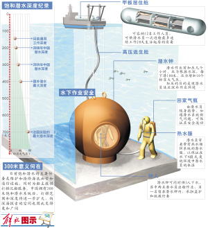 “300米饱和潜水系统”的启用,进一步推进了中国在深海潜水方面的能力。据悉,该系统最大工作深度300米,拥有12人居住舱,3人潜水钟,可供3名潜水员同时进行潜水作业。 本套系统是目前中国工作深度最深,容纳潜水员人数最多,也是设计理念和配置最为先进的一套饱和潜水系统,在世界上也属于先进水平。