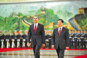 会谈前,胡锦涛为奥巴马访华举行了隆重欢迎仪式。
