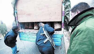 民警对每一辆驶出乌蒙乡的车辆都要仔细检查。