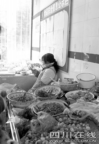 市场内,77岁的谭素群靠摆姜、蒜、萝卜干、火锅底料等赚钱,为儿子治病,拉扯孙儿和外孙女读书。前日,她的重症儿子去世了。为了帮她卖回租摊位的钱,一群卖菜的朋友替她卖菜,两天就卖了近300元。网友“依丝妮娃”也在天涯发帖,号召大家去买她的东西……