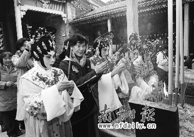 南方日报讯(见习记者/李晓莉通讯员/杨晓瑜陈浩阳)从昨天到今天,市民可于兆祥公园看到海内外的粤剧名家同台连唱两天大戏。昨日,2009粤剧华光诞民俗活动暨广佛肇文化共建启动仪式在广东粤剧博物馆拉开序幕。来自新加坡、马来西亚、法国、英国等国家的数十位海外粤剧艺人齐聚一堂,同贺华光诞,一起商讨粤剧未来的发展。