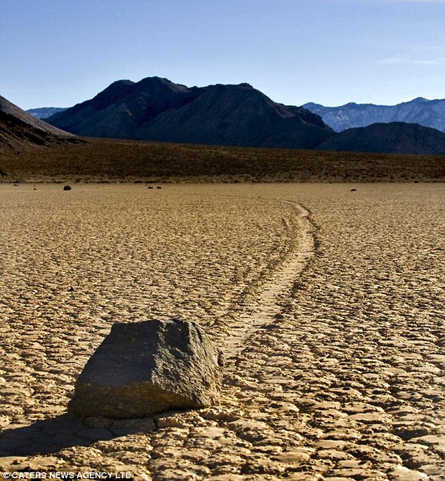 摄影师迈克·班尼(Mike Burne)多年来都在记录着岩石的神秘移动情况。他所拍的那些令人惊奇的相片,让人看到了那些有成年人那么重的巨石在沙漠中滚动的痕迹。他表示,这实在令人难以想象。