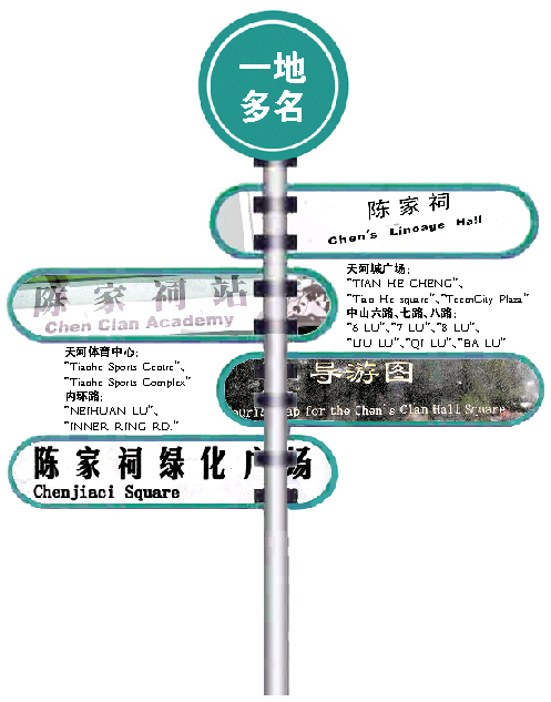 本报讯(记者姚卓文)“Chen Clan Academy”、“Chen's Lineage Hall”、“The Chen Clan's Academy”和“Ancestral Temple of the Chen Family”以上四个英文名都来自同一个地方——陈家祠。一地四名不仅让老外“蒙查查”,同时也让不少广州人为之“晕菜”。