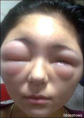 染发剂的过敏反应可能会非常可怕。科尔本的头和眼睛严重肿胀,她看东西都很困难。