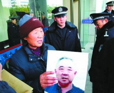 11月19日8时15分,袁爱平早早进入法庭。这个常年生活在农村的老太太拿着老伴李国福的遗像进入法庭后有点茫然,她不知道自己该坐在哪里。