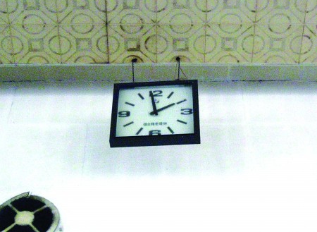 ▲位于兖州火车站进站口上方的“大表”指针定格在三点钟。