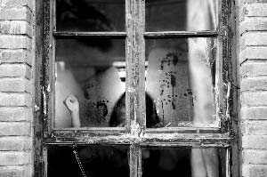 昨日下午,河北蔚县西合营中学,学生在教室窗户上利用霜水绘画。18日下午,该县教育局长在家中身亡 李强 摄