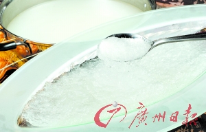 位于革新路的太古海港大酒楼,今年大力研发火锅底,一下子就推出了十几个锅底,而且都相当有特色。店长告诉记者,今年酒楼首创了燕窝锅底,价格为288元/例。“这一例就有1斤的燕窝,让火锅口感更好。”