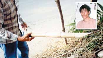 林姓女童十三年前惨遭歹徒以竹竿插入下体,图为警方在现场找到的犯案尖竹,小图为嫌犯十二年前落网时的照片。 来源:《联合报》