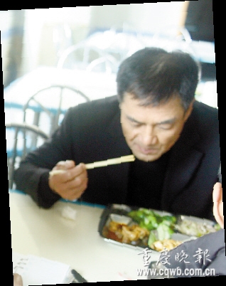 由于该剧一整天都在本报拍摄,报社食堂也被剧组包了下来。食堂师傅为尤勇等明星安排了2荤2素一汤。红烧鸡、青椒肉丝、番茄炒蛋、红烧豆腐……都算得上是报社食堂的拿手菜。此外,食堂也按照平日的惯例为尤勇准备了豆浆。尤勇吃得相当满足,称要比剧组平日的盒饭好很多。不过,即使拍戏体力消耗很大,但尤勇依然保持了不吃米饭的习惯。